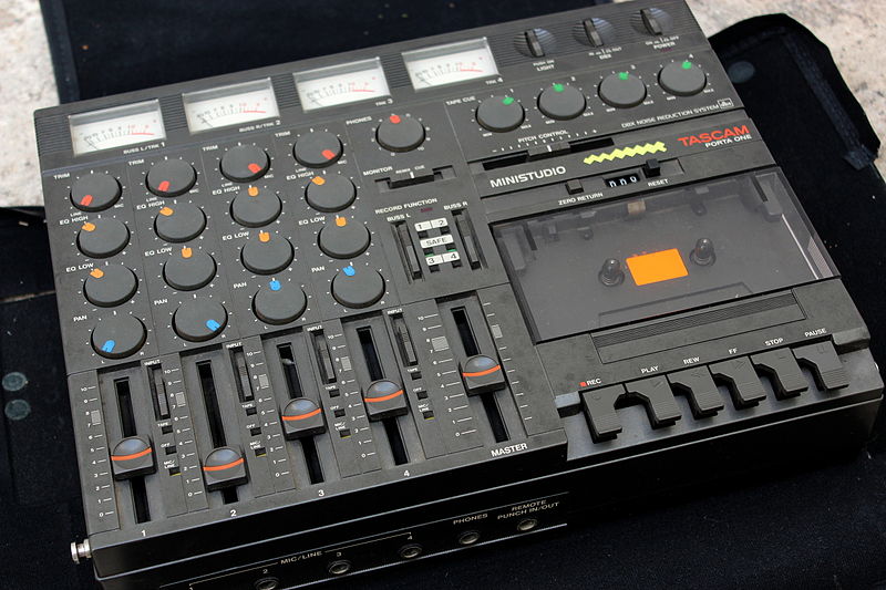 Tascam Porta One 4-Track Mini Studio, Roland MC-707, Walworth Iridium. Erika Synths Mini Matrix Mixer.